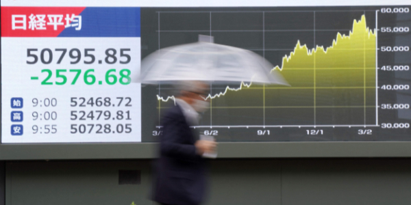▲ 일본 도쿄에서 한 시민이 도쿄증권거래소 앞을 지나가고 있다. <연합뉴스>