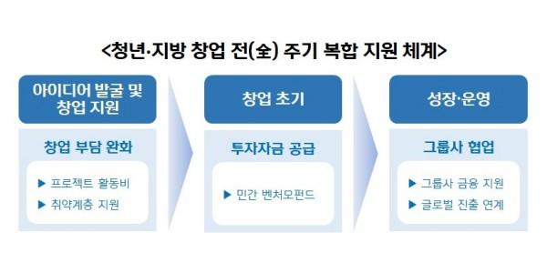신한금융그룹이 정부의 창업 활성화 기조에 맞춰 지속 가능한 창업 생태계 조성에 힘을 싣는다.신한금융은 아이디어 발굴부터 창업, 성장, 글로벌 진출까지 청년 창업 전 과정을 단계적으로 지원하는 '청년·지방 창업 전(全) 주기 복합 지원 체계'를 구축한다고 3일 밝혔다.아이디어 발굴 및 창업 지원 단계에서는 초기 시장 진입을 돕는다.신한금융희망재단은 정부의 '모두의 창업 프로젝트'에서 우수 아이디어를 제안한 참여자들에게 민간 차원의 활동비를 지원하고 최종 선발된 인재를 대상으로는 추가 지원금을 제공한다.신한미소금융재단은 이 가운데 지방·취약계층 청년에게 창업 마중물 대출을 연계해 준다.창업 초기 단계 기업들에게는 투자 자금을 공급한다.신한금융은 그룹사 자금을 신규 출자해 1천억 원 규모의 민간 벤처모펀드를 조성한다. 이 펀드는 청년·지방 창업 기업을 중심으로 투자를 추진한다는 방침을 세워뒀다.성장·운영 단계 기업에는 신한은행&